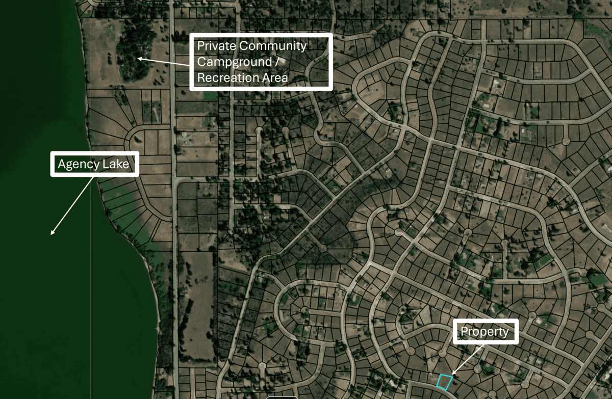 Situated at 42.532980, -121.916769, this property offers convenient access to Agency Lake and the nearby Williamson River—both known for fishing, kayaking, and bird watching. National forest lands are within easy reach, giving you miles of trails and outdoor activities. Chiloquin is just minutes away for basic supplies, while Klamath Falls (about 30 minutes) provides full shopping, dining, and medical services. The Oregon Shores II community offers private lakefront park amenities, including RV hookups, kitchen facilities, and recreational space exclusively for members.